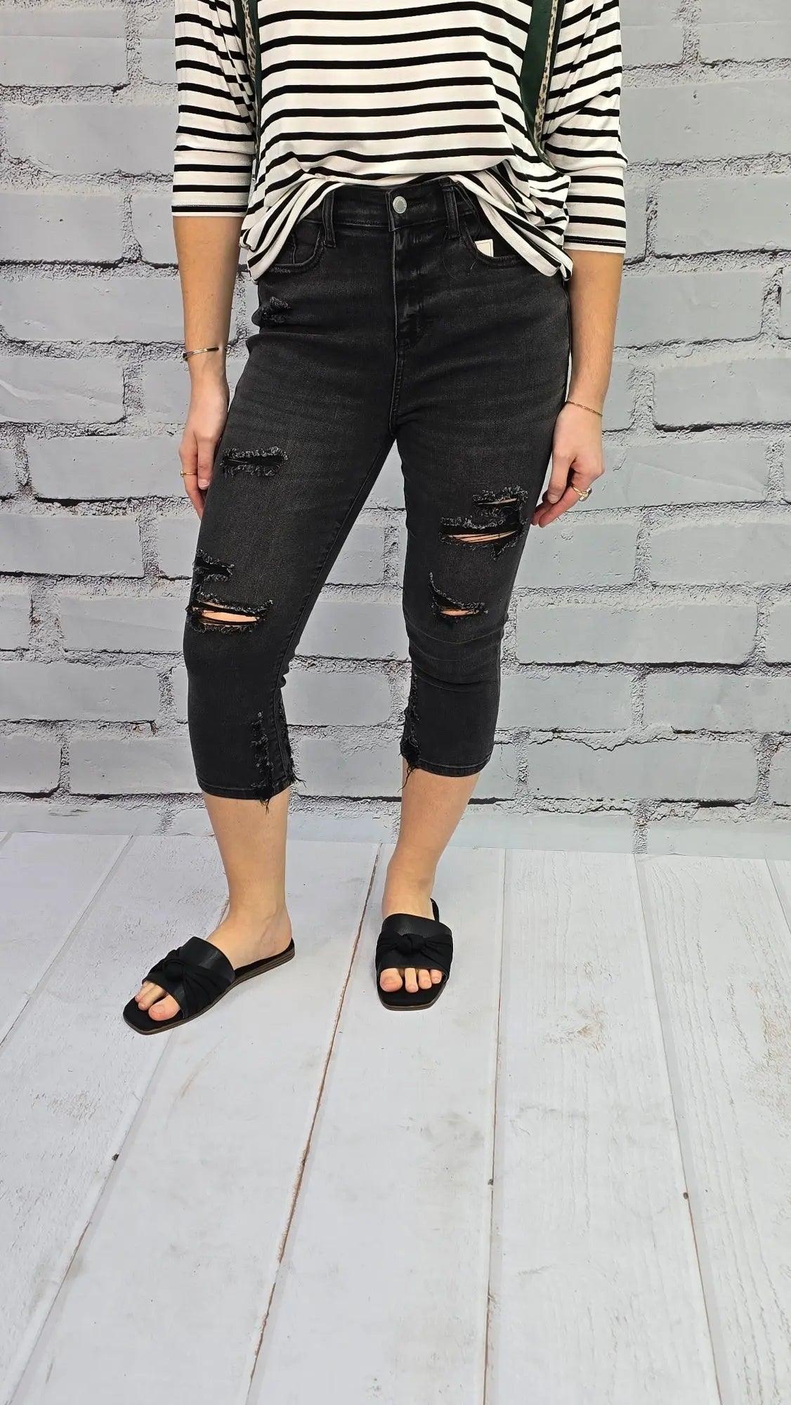 The Arden Judy Blue Capris – HW Distressed Black Capris 🖤🔥